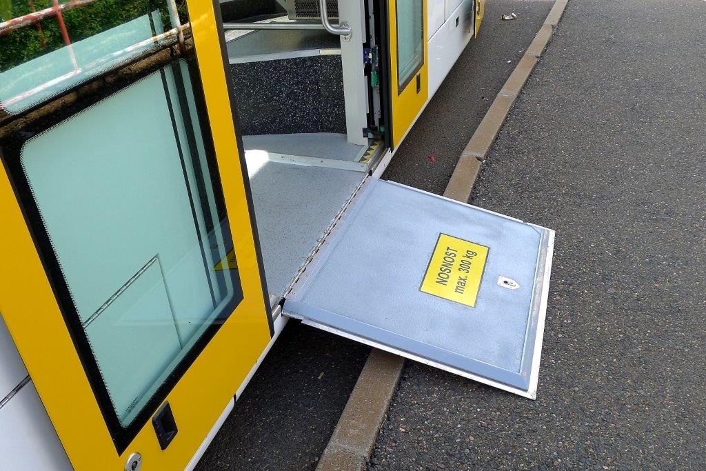 Натрамвае встроены четыре парывнераздвижныхдверей, которые ускоряют обмен пассажиров на остановках. Первыедвери, шириной 750 мм одностворчатные, дальнейшие три двери, шириной 1300 мм двустворчатные. У второй двериустановлена механическая платформас ручным управлением для облегчения посадки пассажиров с ограничением подвижности. Все двери имеют системы защиты безопасности против захвата пассажиров.